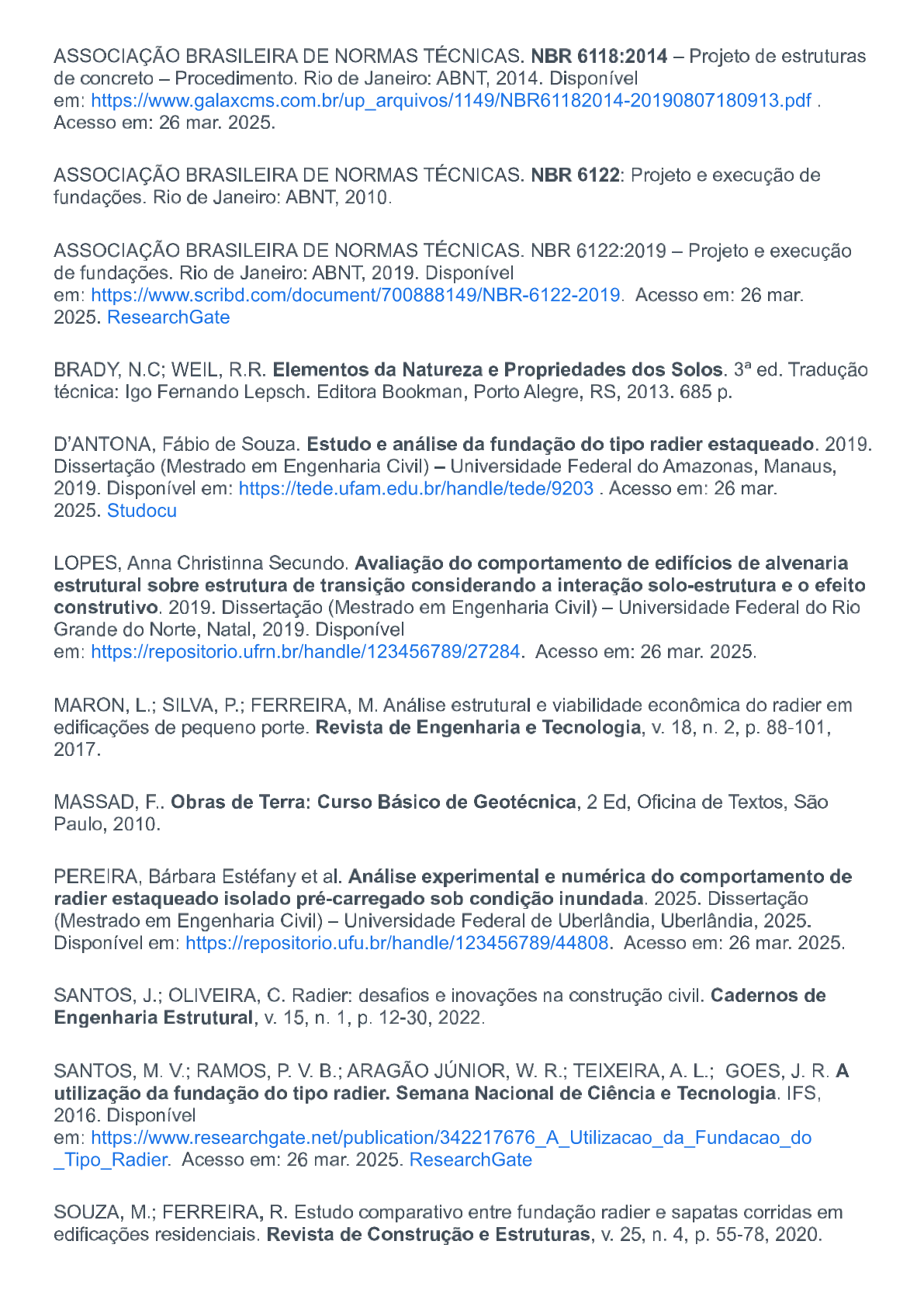 (3) Docente do curso de graduação em Engenharia Civil da Universidade Nilton Lins. wm.eng.civil@gmail.com