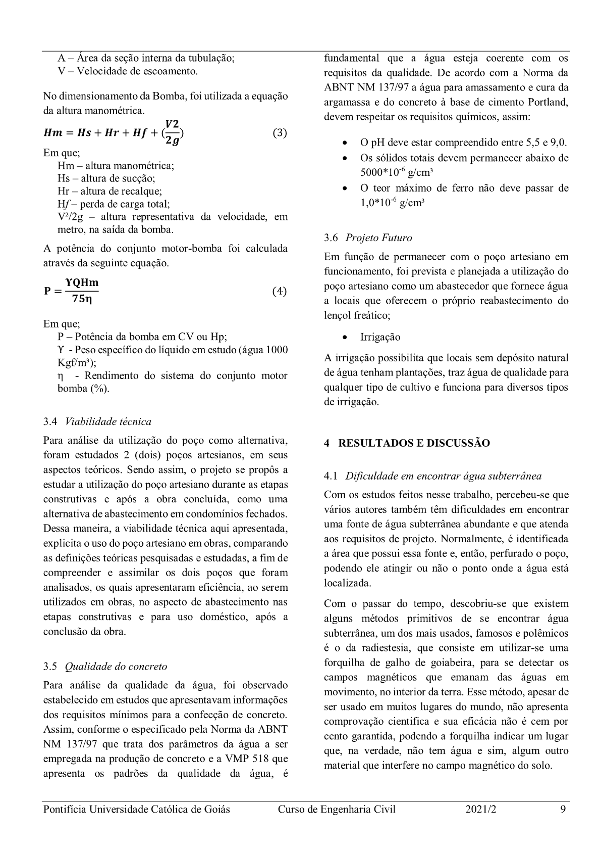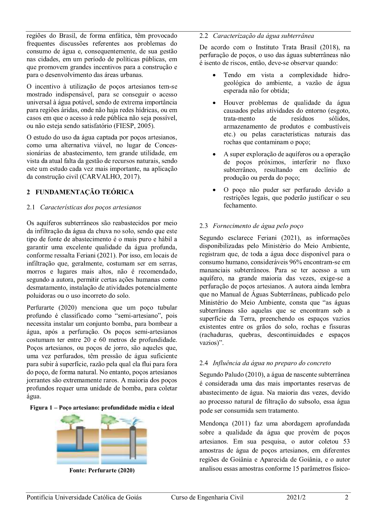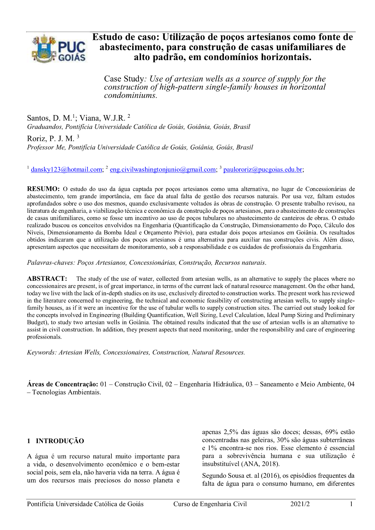 O estudo do uso da água captada por poços artesianos como uma alternativa, no lugar de Concessionárias de abastecimento, tem grande importância, em face da atual falta de gestão dos recursos naturais. Por usa vez, faltam estudos aprofundados sobre o uso dos mesmos, quando exclusivamente voltados às obras de construção. O presente trabalho revisou, na literatura de engenharia, a viabilização técnica e econômica da construção de poços artesianos, para o abastecimento de construções de casas unifamiliares, como se fosse um incentivo ao uso de poços tubulares no abastecimento de canteiros de obras. O estudo realizado buscou os conceitos envolvidos na Engenharia (Quantificação da Construção, Dimensionamento do Poço, Cálculo dos Níveis, Dimensionamento da Bomba Ideal e Orçamento Prévio), para estudar dois poços artesianos em Goiânia. Os resultados obtidos indicaram que a utilização dos poços artesianos é uma alternativa para auxiliar nas construções civis. Além disso, apresentam aspectos que necessitam de monitoramento, sob a responsabilidade e os cuidados de profissionais da Engenharia.