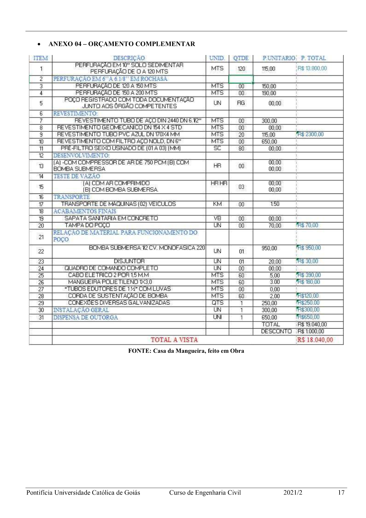 Estudo de caso: Utilização de poços artesianos como fonte de abastecimento, para construção de casas unifamiliares de alto padrão, em condomínios horizontais.