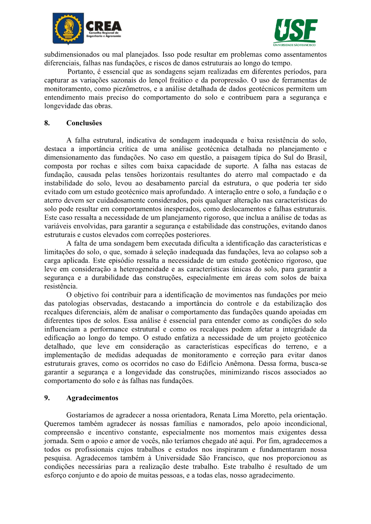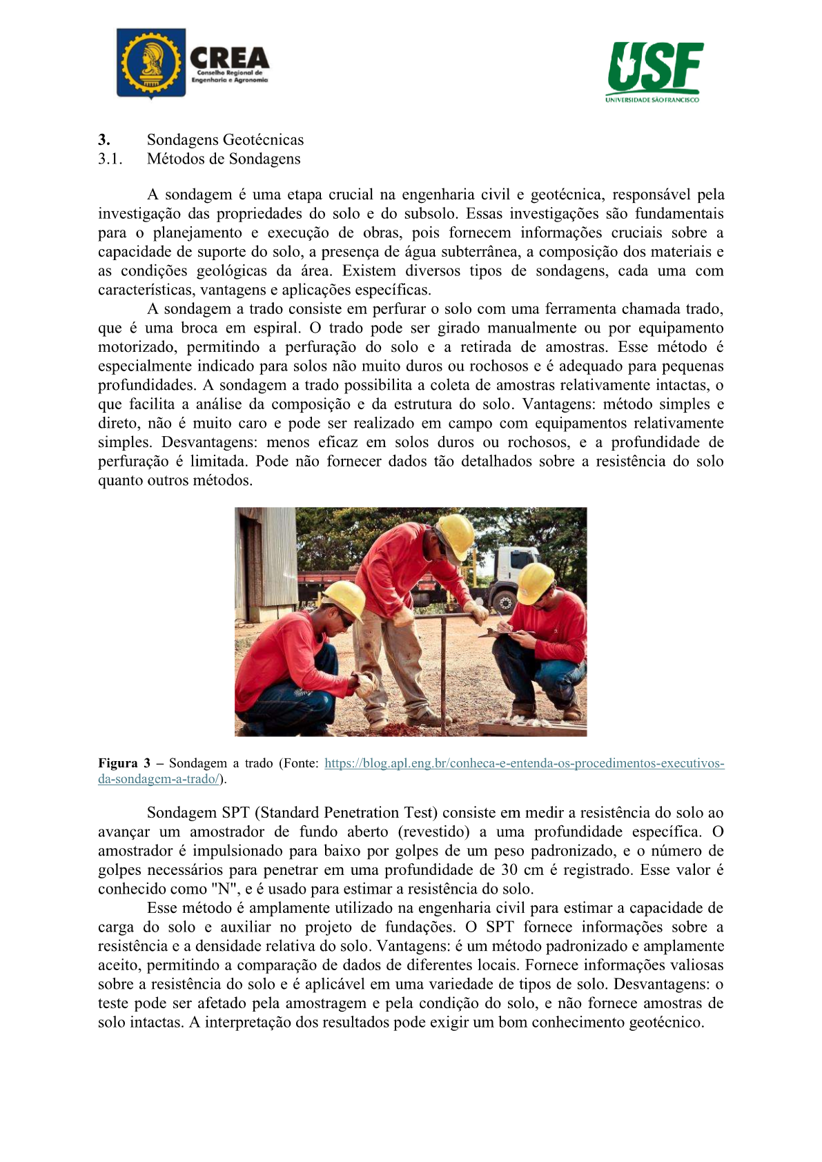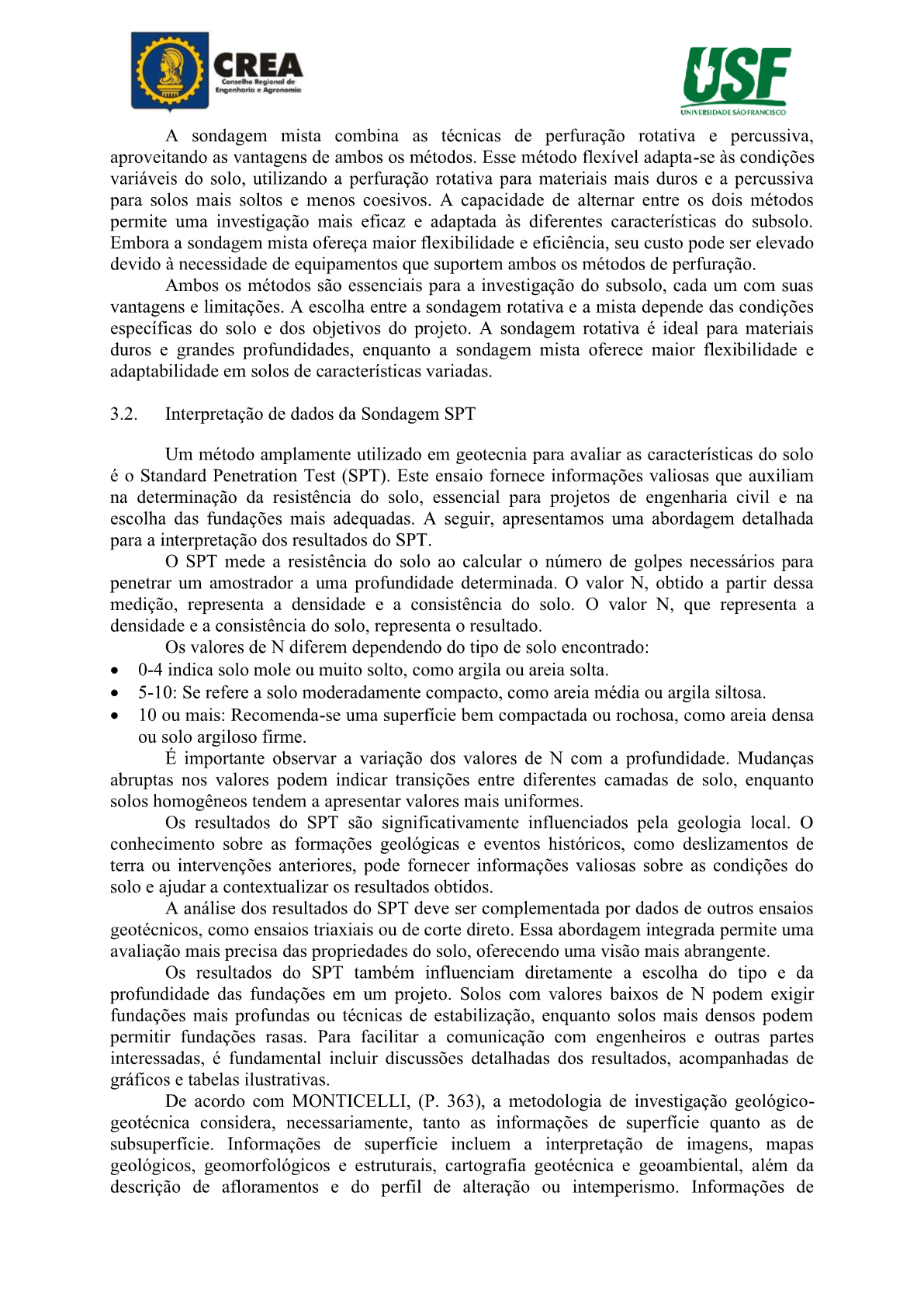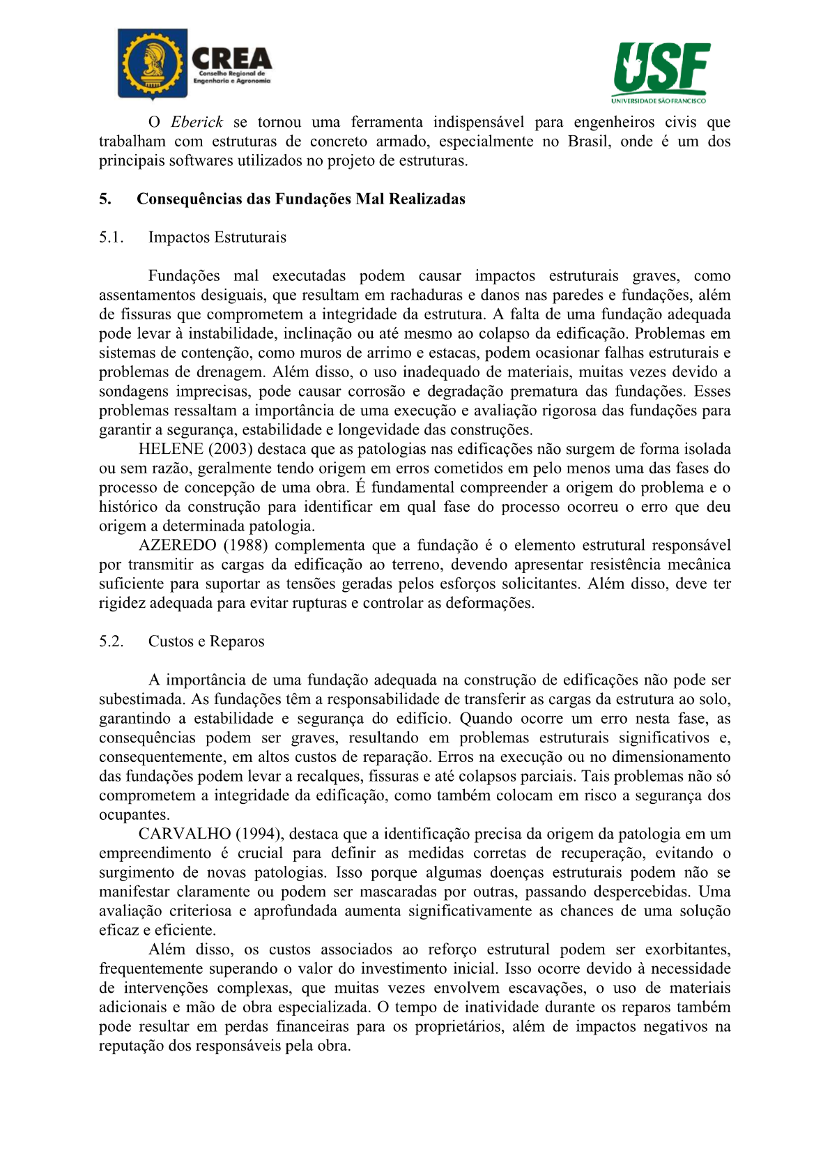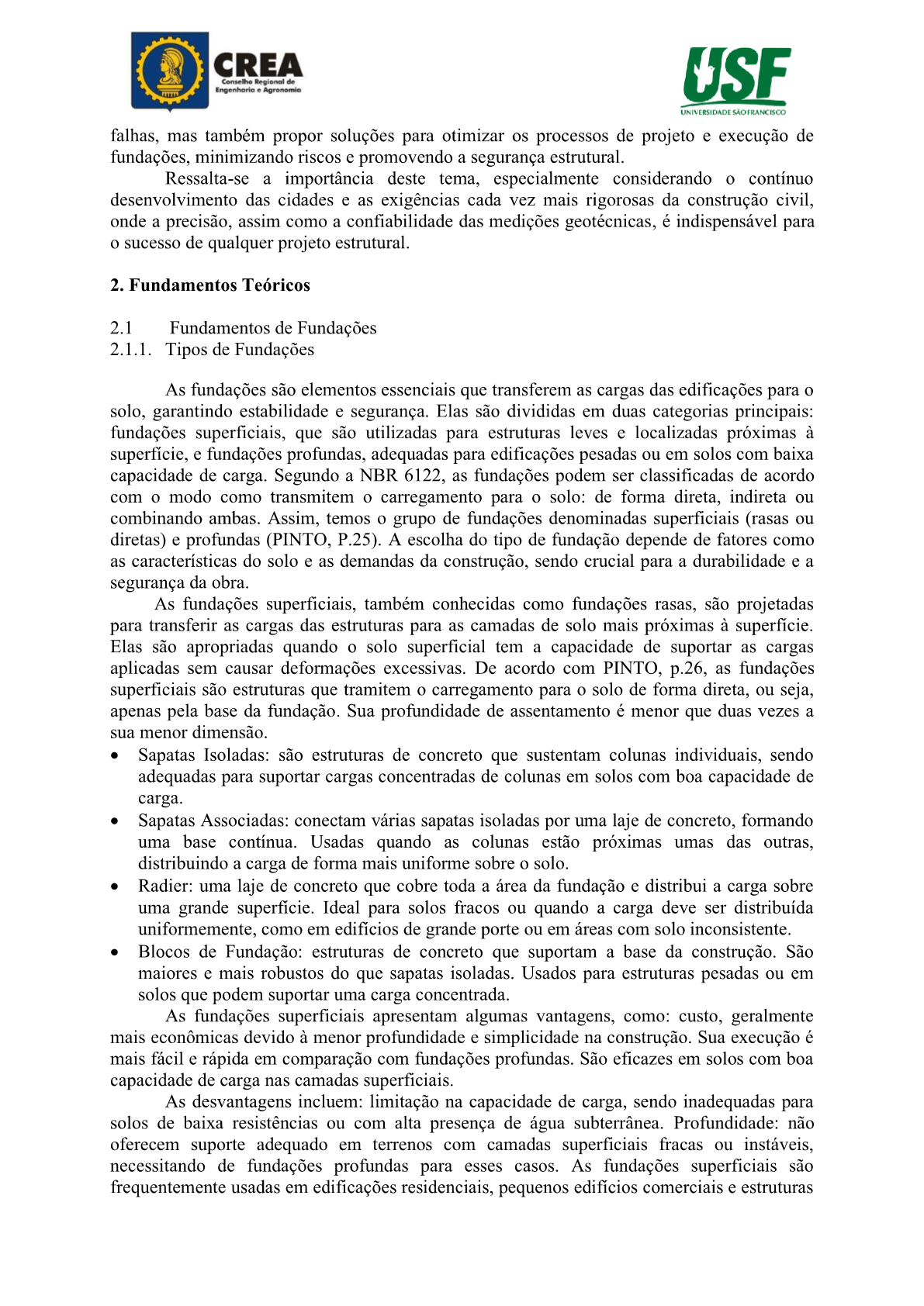 Este trabalho aborda as repercussões de fundações inadequadas em projetos estruturais, enfatizando a importância das sondagens geotécnicas na identificação das condições do solo. Fundações são elementos cruciais que sustentam a carga de uma edificação, e sua execução correta é vital para garantir a segurança e a durabilidade da estrutura. Quando as sondagens geotécnicas são insuficientes ou mal executadas, podem resultar em falhas significativas, como recalques, fissuras e até colapsos estruturais. A pesquisa foi realizada por meio de um estudo de caso, onde as deficiências nas sondagens levaram ao comprometimento estrutural, analisando os métodos de investigação do solo e as técnicas de engenharia que podem mitigar esses riscos. Também são discutidos os aspectos legais e normativos relacionados à responsabilidade dos profissionais envolvidos no projeto e na execução das fundações. A conclusão aponta que a integração de sondagens geotécnicas rigorosas e detalhadas no processo de projeto é essencial para evitar problemas futuros. O estudo sugere que uma abordagem mais cuidadosa e investimentos em tecnologia de sondagem podem reduzir as incidências de falhas estruturais, assegurando a segurança das construções e a proteção do patrimônio. A pesquisa reforça a necessidade de capacitação contínua dos profissionais de engenharia civil e a adoção de boas práticas no planejamento e execução de fundações.